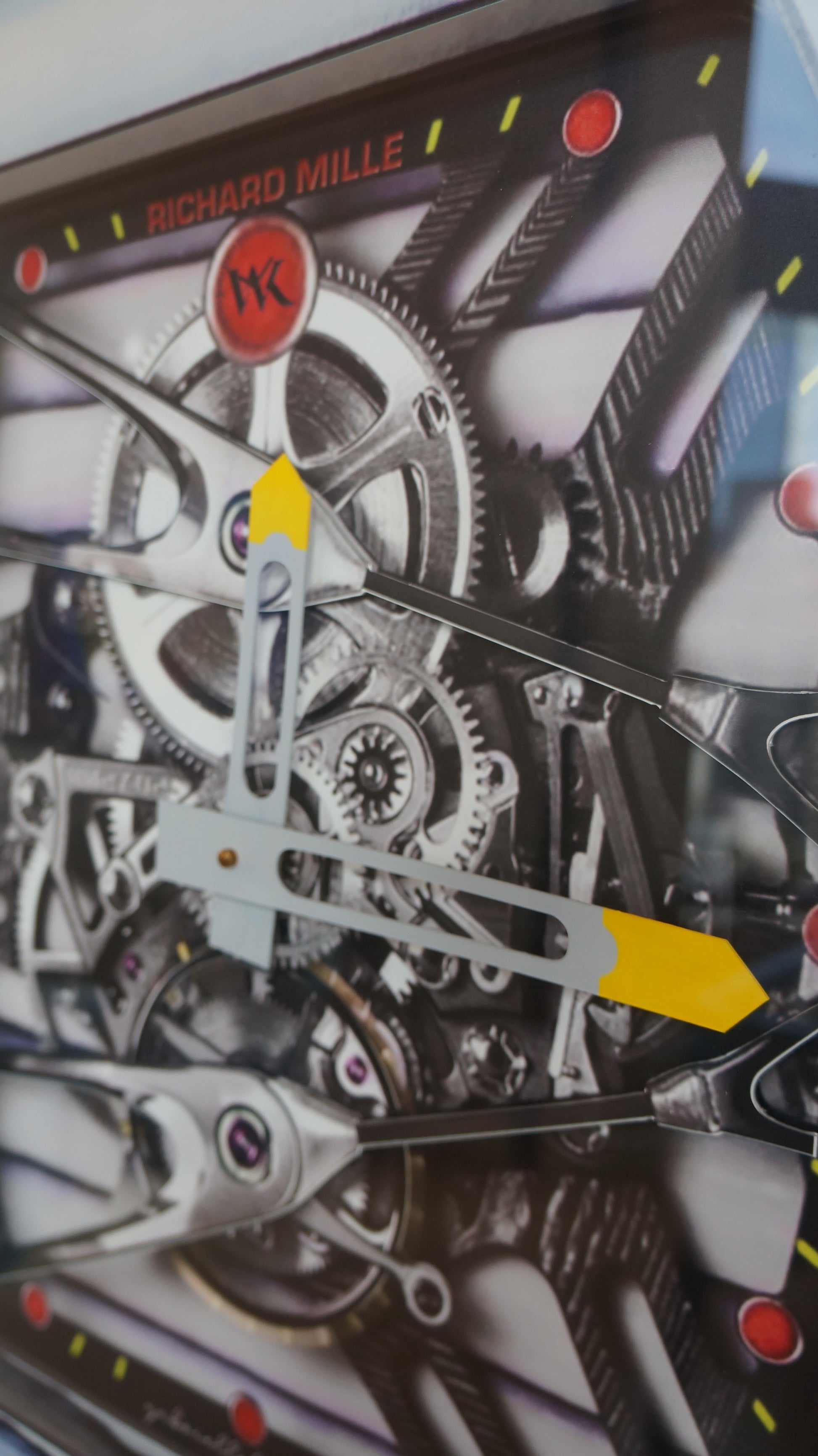 The artwork is printed across multiple pieces of metal, and carefully assembled to create a fully functioning wall clock that doubles as a work of art. Each layer adds depth and dimension, making the piece not only visually captivating but also interactive and dynamic. Each Metal Edition is made with precision and attention to detail, ensuring that every clock is a stunning centerpiece worthy of any space.