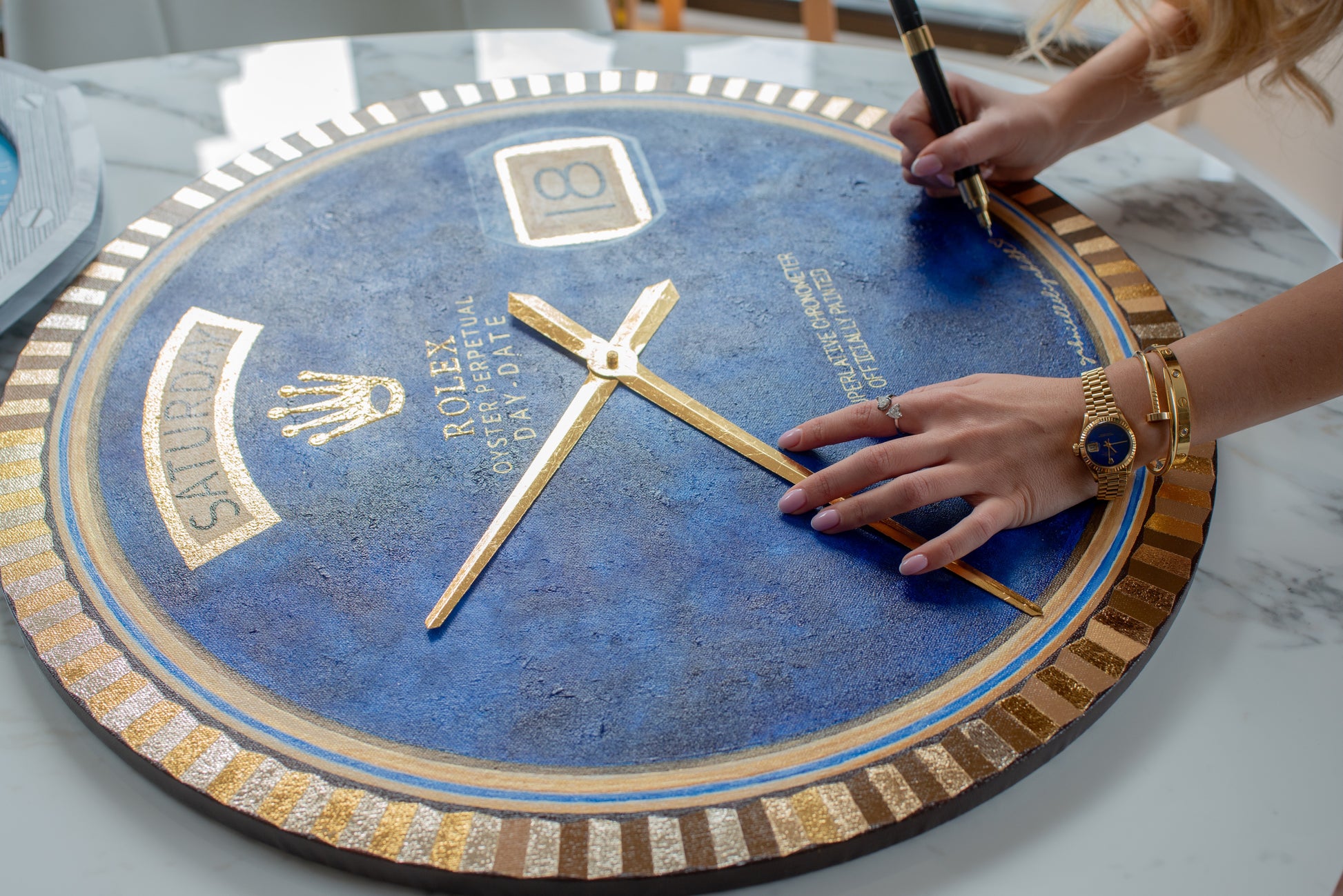 Rolex Day-Date President Lapis Inspired Clock Painting. Accents in 100% gold leaf.